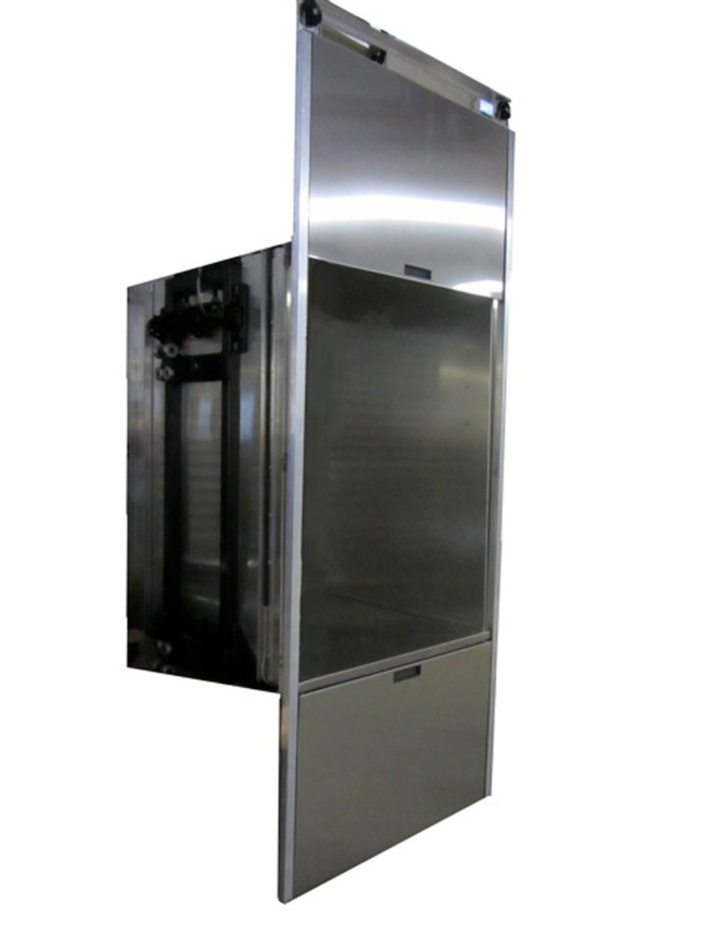 Jeeves Pro 500: The Jeeves Pro 500 is the largest dumbwaiter allowed by code. The cab is constructed of powder coated steel, and can be upgraded to stainless steel. A floor loading option is available, allowing carts to easily roll into the cab.